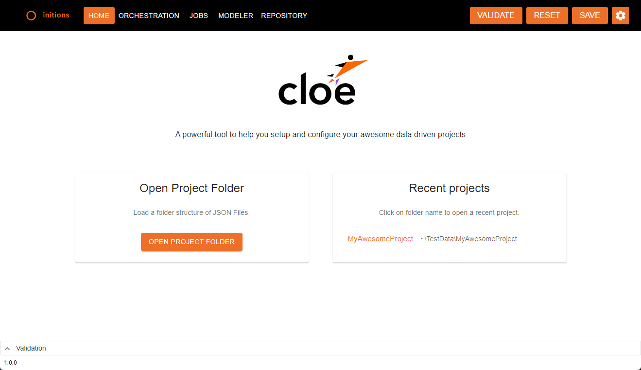 CLOE GUI¶ The CLOE GUI helps you with managing data models. Please refer to the subpages for more details. Features¶ Navigation Grid Validation Save Reset Source Control Settings Templates Guides¶ Update Database Troubleshooting¶ API