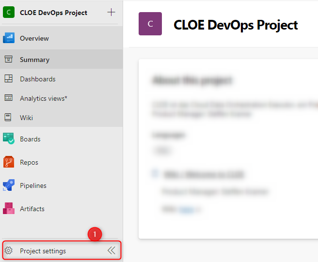 1. Navigate to your DevOps project and open the project settings. ProjectSettings