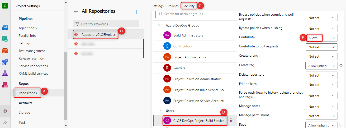 2. In project settings you can allow the build service to contribute to the selected repository: